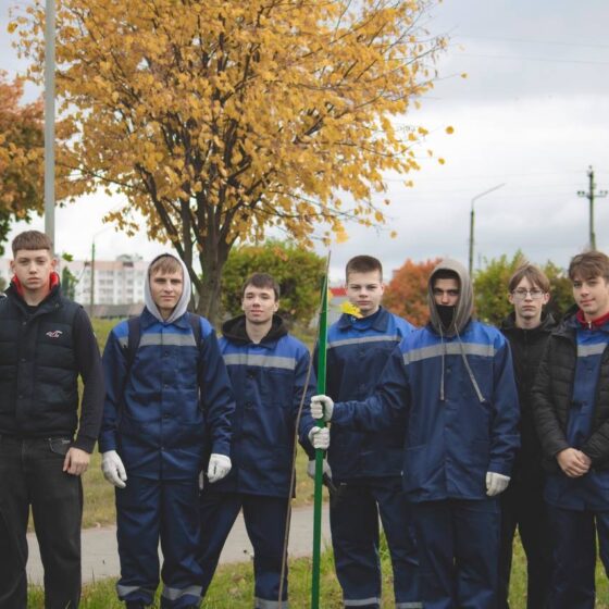 10.10.2025 активисты БРСМ колледжа приняли участие в трудовой акций по посадке деревьев и озеленению города.