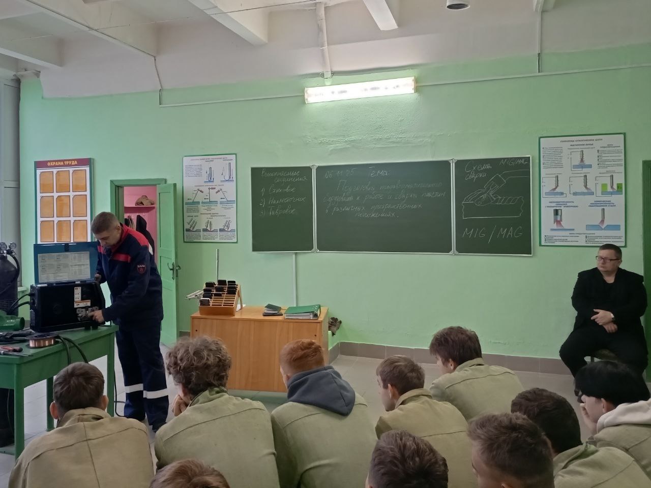 06.11.2025 состоялся открытый урок мастера производственного обучения Позняка Д.С. в группе МЭГ-152 по теме: «Подготовка полуавтоматического оборудования к работе и сварке пластин в различных пространственных положениях».