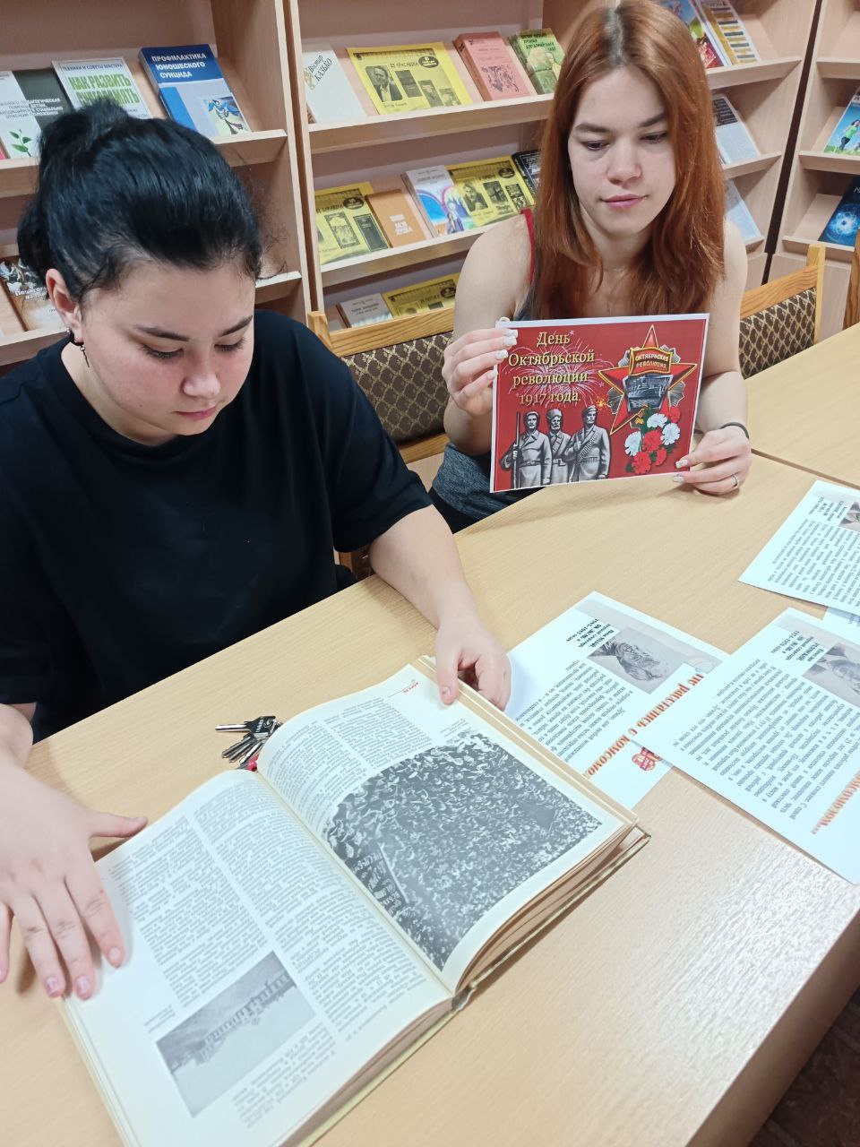 С целью знакомства обучающихся с историей Великой октябрьской революции 1917 года, воспитания интереса к историческому прошлому 8 ноября в библиотеке прошёл тематический час «Революция 1917»
