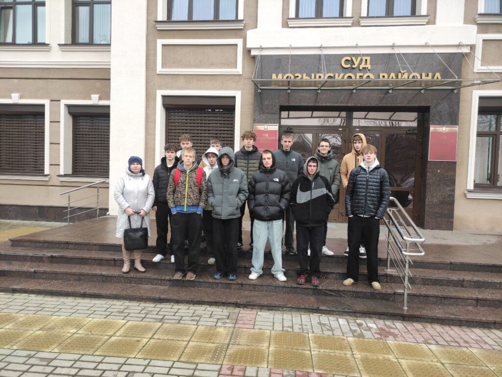 25 ноября 2025 года обучающиеся колледжа посетили заседание суда Мозырского района, на котором рассматривалось уголовное дело, предусмотренное частями 1 и 4 статьи 328 Уголовного Кодекса Республики Беларусь.