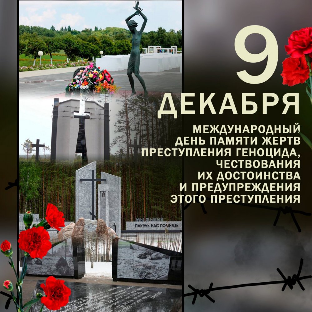 Международный день памяти жертв преступления геноцида, чествования их достоинства и предупреждения этого преступления 9 декабря 2025 года десятая годовщина Международного дня памяти жертв преступления геноцида. Дата была выбрана в связи с тем, что в этот день в 1948 году Генеральная Ассамблея ООН приняла Конвенцию о предупреждении преступления геноцида и наказании за него. В Конвенции геноцид определяется как «действия, совершаемые с намерением уничтожить, полностью или частично, какую-либо национальную, этническую, расовую или религиозную группу…». В Конвенции подтверждается, что геноцид, независимо от того, совершается он в мирное или военное время, является преступлением, которое нарушает нормы международного права и против которого участники Конвенции обязуются «принимать меры предупреждения и карать за его совершение».
