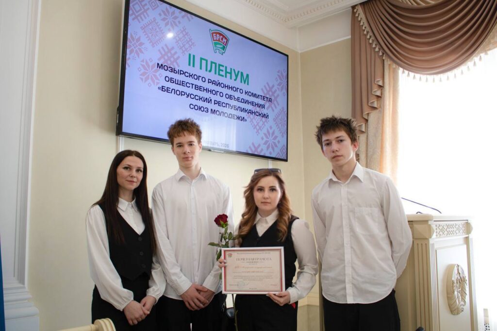 Педагог-организатор Птушко Е.Ю. вместе с учащимися 2-го курса приняли участие во II пленуме Мозырского районного комитета общественного объединения «Белорусского Республиканского Союза Молодежи» где наше учреждение было награждено почетной грамотой.