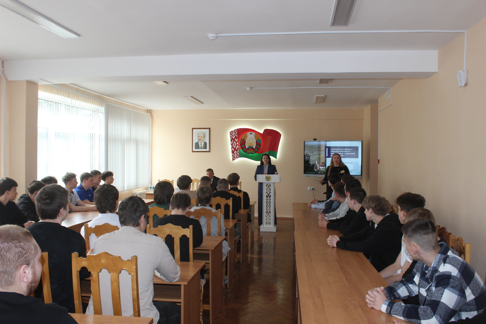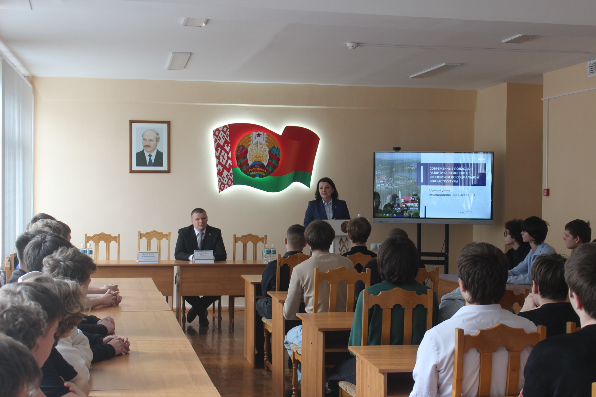 19.03.2026 заместитель начальника главного управления образования Гомельского облисполкома Дулуб Ольга Александровна провела встречу с учащимися колледжа на тему: «СОВРЕМЕННЫЕ ПОДХОДЫ К РАЗВИТИЮ РЕГИОНОВ: ОТ ЭКОНОМИКИ ДО СОЦИАЛЬНОЙ ИНФРАСТРУКТУРЫ«.