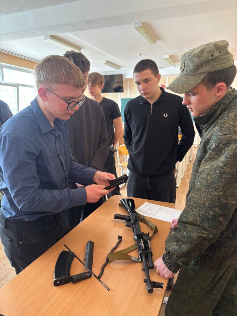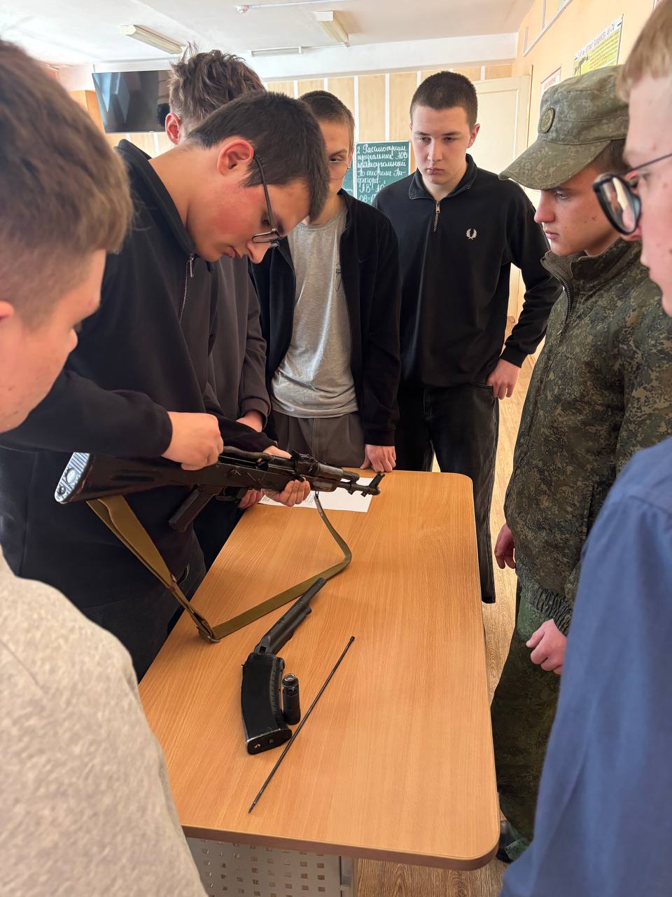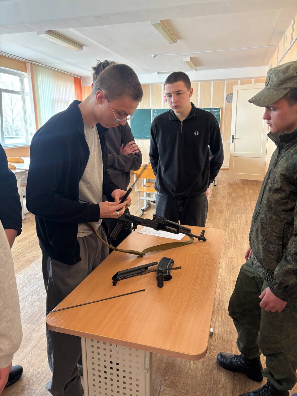18.03.2026 представители в/ч 81223 в рамках военно-полевых сборов провели профориентационную работу с учащимися группы ЭКМ-27, в ходе которой были проведены сборка/разборка автомата АК-74 и даны рекомендации о поступлении в высшее военное заведение УО «Военная академия Республики Беларусь».