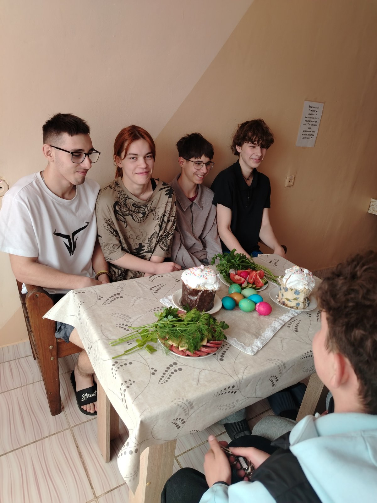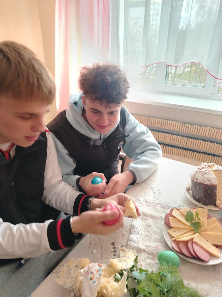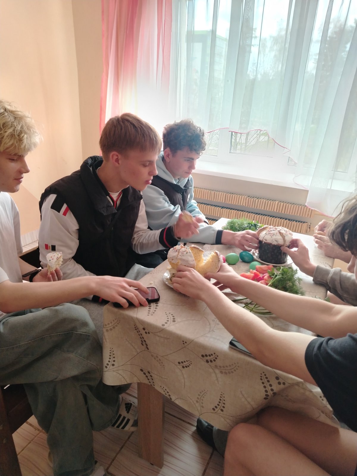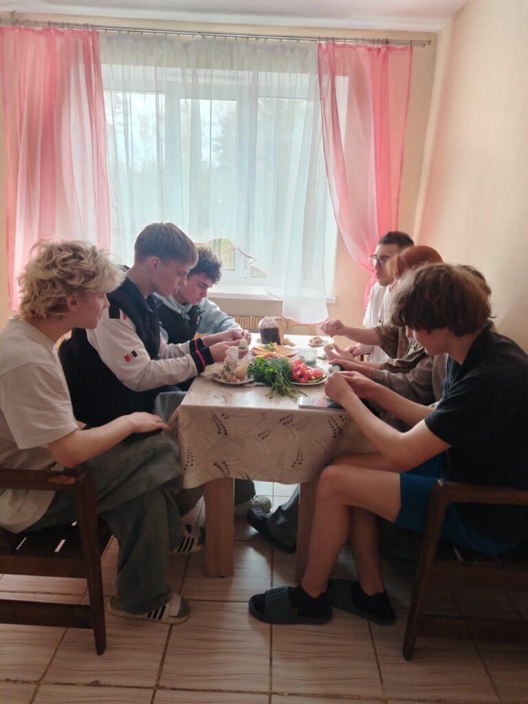 12.04.2026 в общежитии прошло чаепитие приуроченное празднику Пасхи. Цель мероприятия: формирование нравственных ценностей и семейных традиций. Беседовали о любви и заботе, о ближних, милосердии, прощении и памяти о вечных христианских ценностях. За столом, в ходе чаепития, вспоминали семейные традиции: угощались пасхальными куличами, играли в битки, поздравляли друг друга.