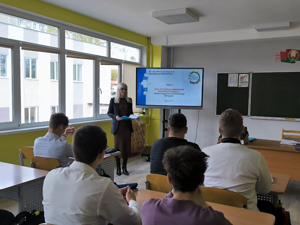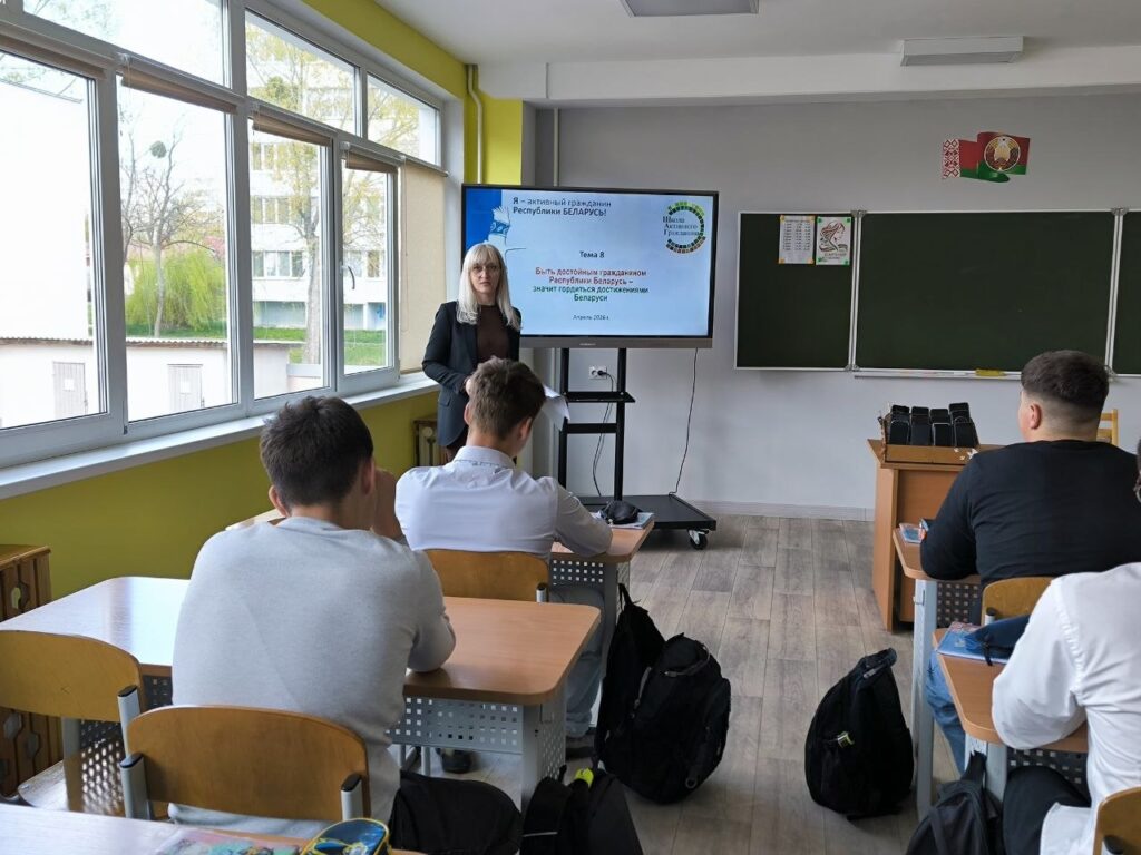 24.04.2026 в группе ЭКМ-18 в рамках информационно-образовательного проекта «Школа Активного Гражданина» прошел кураторский час на тему «Быть достойным гражданином Республики Беларусь – значит гордиться достижениями Беларуси».